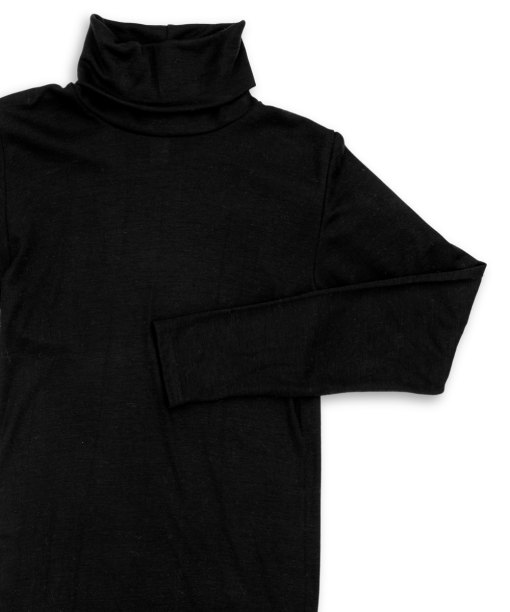 Ull og silki rúllukragabolur. Blandan af ull og silki gerir bolinn einstaklega léttan og mjúkan. Bæði ullin og silkið eru náttúruleg efni og hafa þá góðu eiginleika að anda vel og tempra hitastig líkamans eftir þörfum.