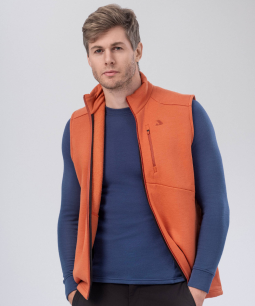 Janus Airwool 350 ullarvestið er gert úr Merino ullarblöndu sem er burstuð að innan fyrir auka einangrun á hita og mýkt. Það hentar vel sem millilag í útivistina og líka fyrir hversdagslega notkun.