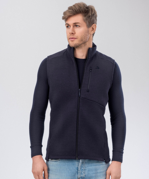 Janus Airwool 350 ullarvestið er gert úr Merino ullarblöndu sem er burstuð að innan fyrir auka einangrun á hita og mýkt. Það hentar vel sem millilag í útivistina og líka fyrir hversdagslega notkun.