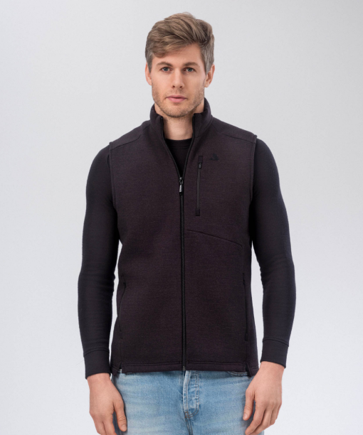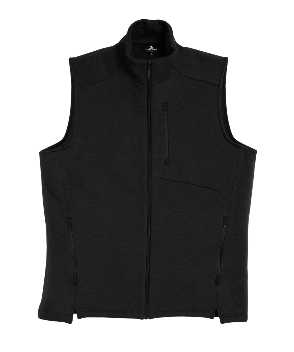 Janus Airwool 350 ullarvestið er gert úr Merino ullarblöndu sem er burstuð að innan fyrir auka einangrun á hita og mýkt. Það hentar vel sem millilag í útivistina og líka fyrir hversdagslega notkun.