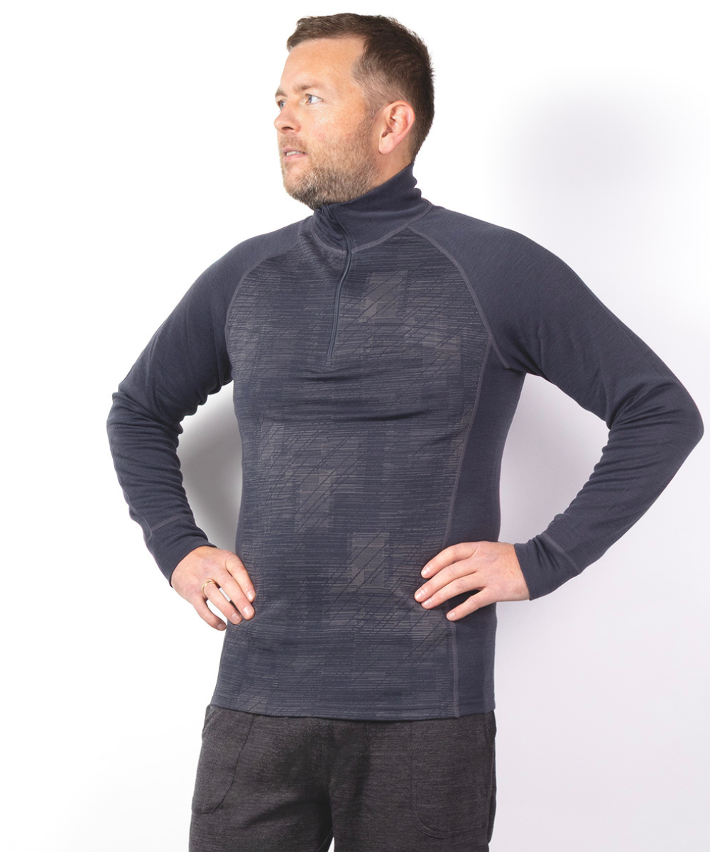 Safa hálfrenndur ullarbolur með munstri að framan. Merino ullin er þægileg við húðina, andar vel og hleypir raka frá líkamanum vel í gegn. Ullarfötin verða ekki köld og þvöl ef þau blotna og þorna hratt.