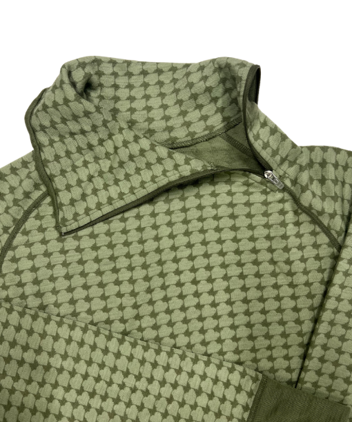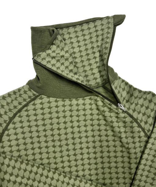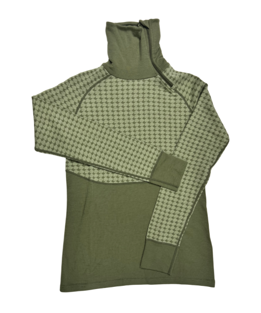 Safa ullarbolur með munstri og hálfrenndum rennilás á hlið kragans. Merino ullin er þægileg við húðina, andar vel og hleypir raka frá líkamanum vel í gegn. Ullarfötin verða ekki köld og þvöl ef þau blotna og þorna hratt.